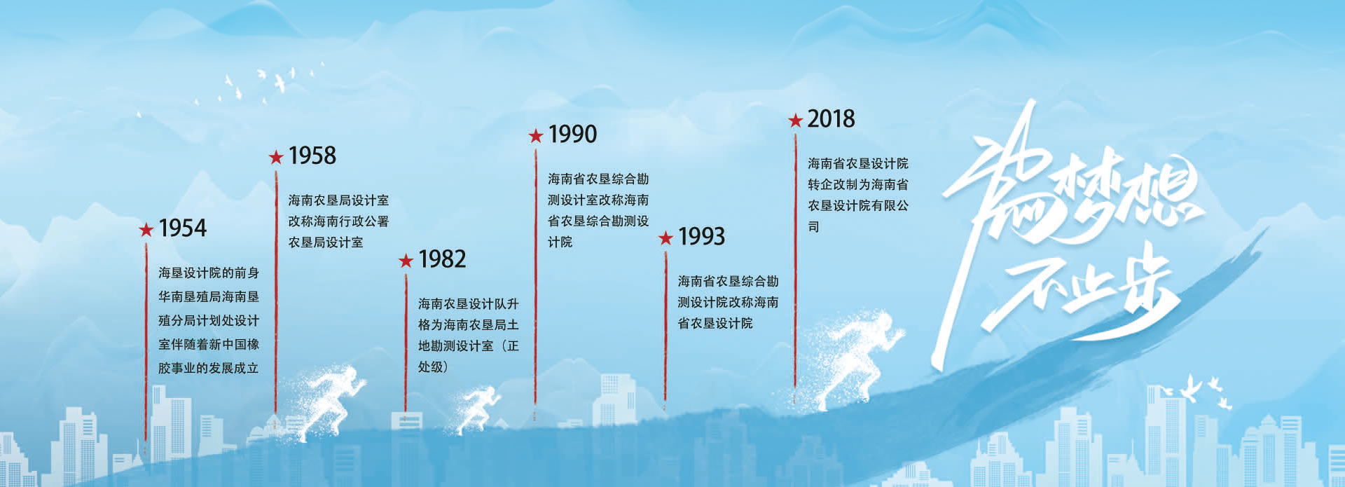 發(fā)展歷程海南農墾勘測設計隊伍1954年成立至今,已走過70年歷程。1953年8月海南墾殖分局成立林場設計隊,1954年4月在林場設計隊的基礎上,組建設計室,海南墾區有了自己的專業(yè)勘察>詳情